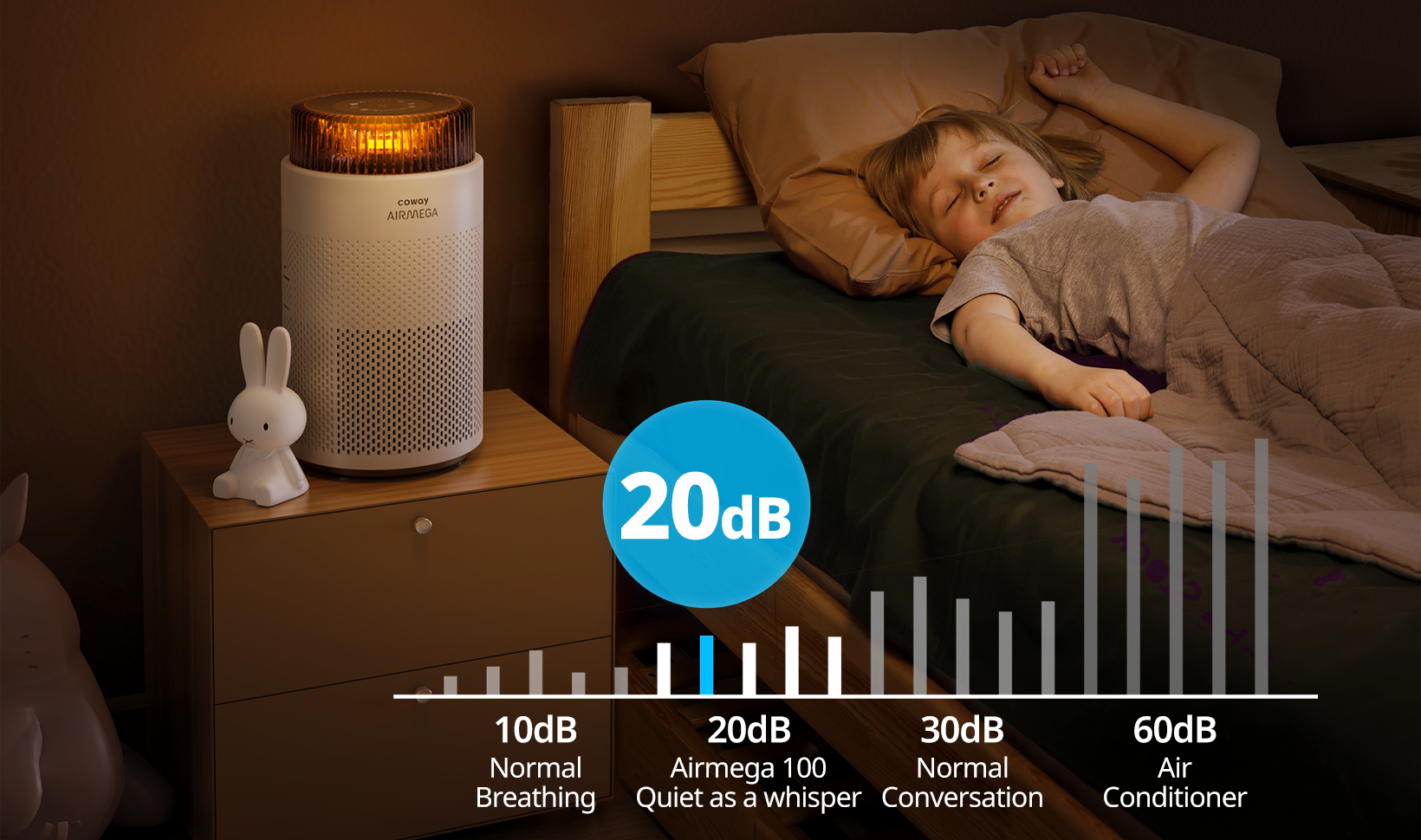 In sleep mode, Airmega 100 is quiet as a whisper.